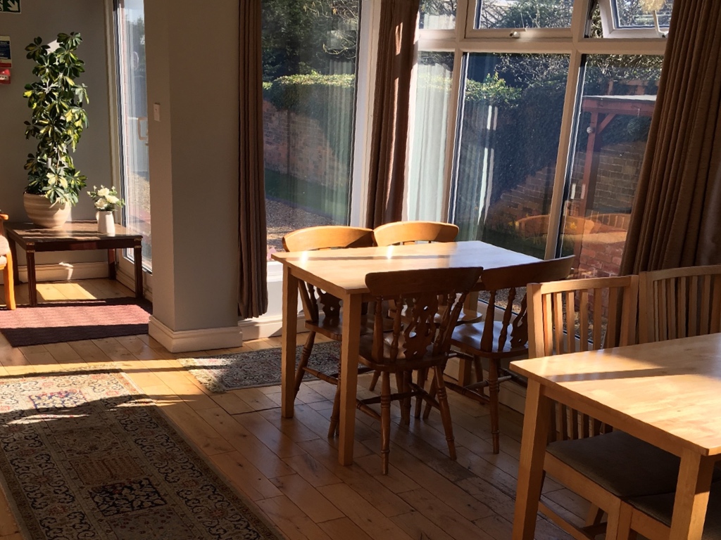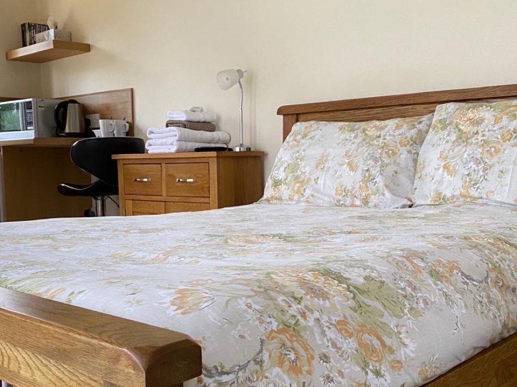 Eggs, bread, cereals, juice and milk was provided for guests in the communal kitchen to make your own breakfast at a time that suited. This was ideal for us as we had to be out early each morning for a conference. The communal kitchen had a full-size cooker, fridge and freezer for guests to use and an adjacent dining room. Property was clean and well maintained. Off road parking and within 10 minutes drive of the motorways. Great value for money.